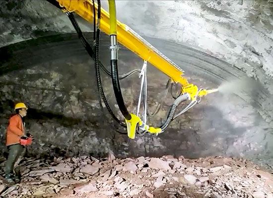 隧道施工濕噴混凝土設備主要有隧道濕噴機械手和普通濕噴機兩種。隧道濕噴機械手與普通濕噴機相比,具有機動靈活自由、作業(yè)時間短、工作效率高、噴射量大、回彈小、作業(yè)勞動強度低、安全,工序銜接緊湊等優(yōu)勢。